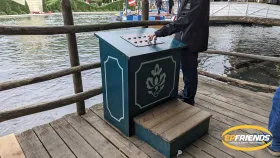 Über mehrere Knöpfe steuerbar können die Besucher hier verschiedene Fontänen auf dem großen Abenteuersee aktivieren und sich selbst ein plätscherndes Wasserspiel inszenieren.