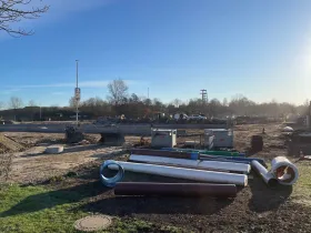 Bisschen auffüllen, Rasensteine und Asphalt. Das dürfte bis in vier Wochen passen.